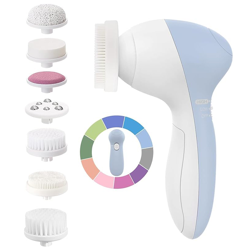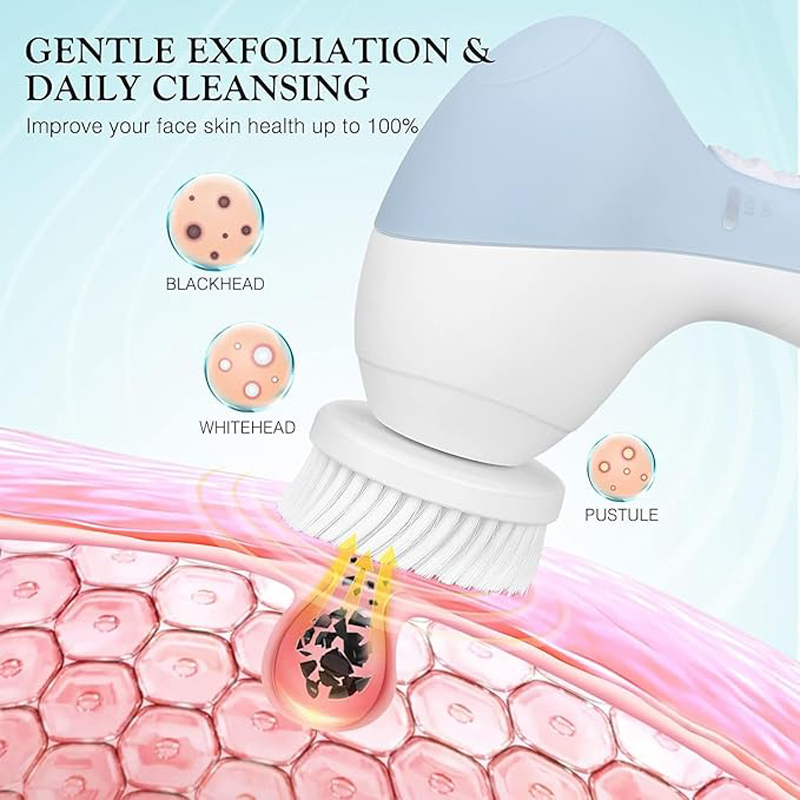 - AII IN ONE CLEANSING SYSTEM: This itembeauty kit contains 2 bristle brush heads of different sizes, 1 silicone brush head, 1 pumice stone, 1 remover sponge head, 1 massaging brush head, 1 exfoliation brush head , for a total of 7 brush heads, suitable for all skin types, which can meet a variety of cleansing and skincare needs including fades marks, remove blackheads, deep pore cleansing, removal cleanser and more.