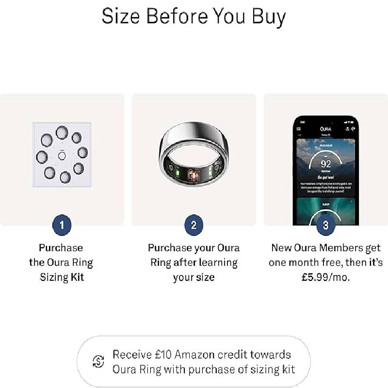 • SIZE BEFORE YOU BUY – Oura Ring sizes are different from standard ring sizes. Purchase an Oura Ring Sizing Kit on Amazon and receive an Amazon credit of GBP 10 towards the future purchase of an Oura Ring (terms and conditions apply)