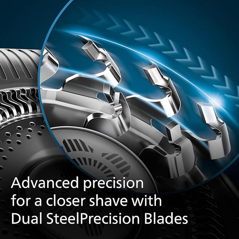 - Advanced precision for a closer shave: 72 high-performance self-sharpening Dual SteelPrecision blades cut up to 150,000 times per minute for a close shave, even on 5 day beards.