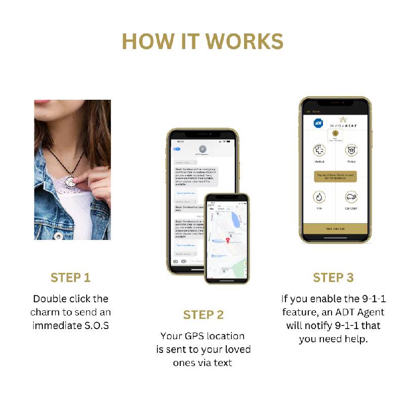 - Live Video Streaming: Have an ADT agent looking out for you via video using the invisaWear app. The agent can quickly get help to your location and provide the video to authorities if requested.