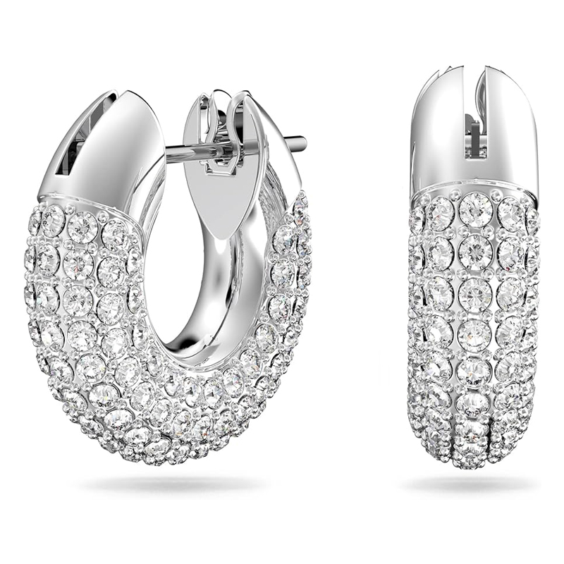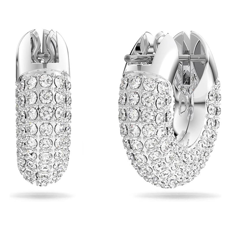 - Items delivered: 1x pair of Swarovski sophisticated Dextera hoop earrings, clear crystals in a rhodium-plated setting with a Swarovski earring box.